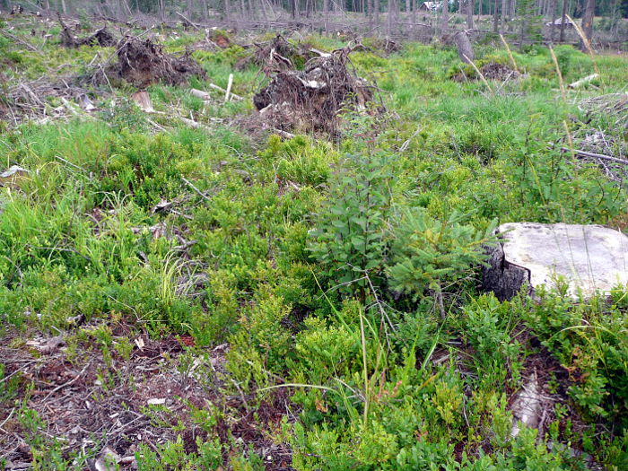Podobné kalamity postihli Tichú dolinu v nedávnej minulosti už viackrát a bez toho, že by si to verejnosť nejako všimla, boli spracované a zalesnené. Na obrázku vidíme približne 10 rokov starú plochu v Tichej doline zalesnenú smrekom jedľou a smrekovcom.