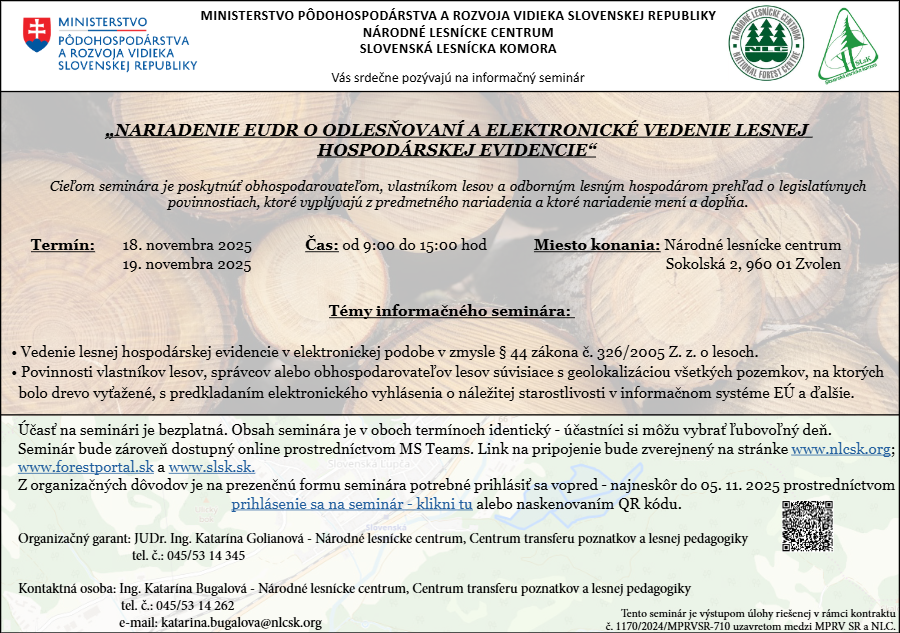 Pozvánka – „NARIADENIE EUDR O ODLESŇOVANÍ A ELEKTRONICKÉ VEDENIE LESNEJ HOSPODÁRSKEJ EVIDENCIE“